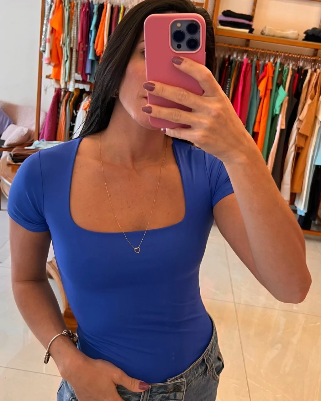 Além de não ter bojo, o Body Manguinha é ideal para quem busca liberdade de movimento e um caimento impecável.